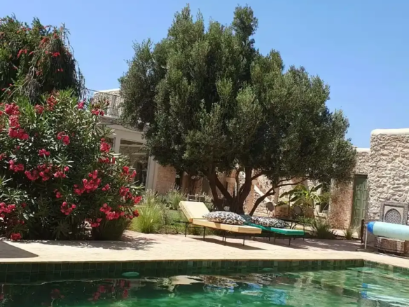 Piscine chauffée utilisable toute l’année, offrant confort et détente indépendamment de la saison à Essaouira.