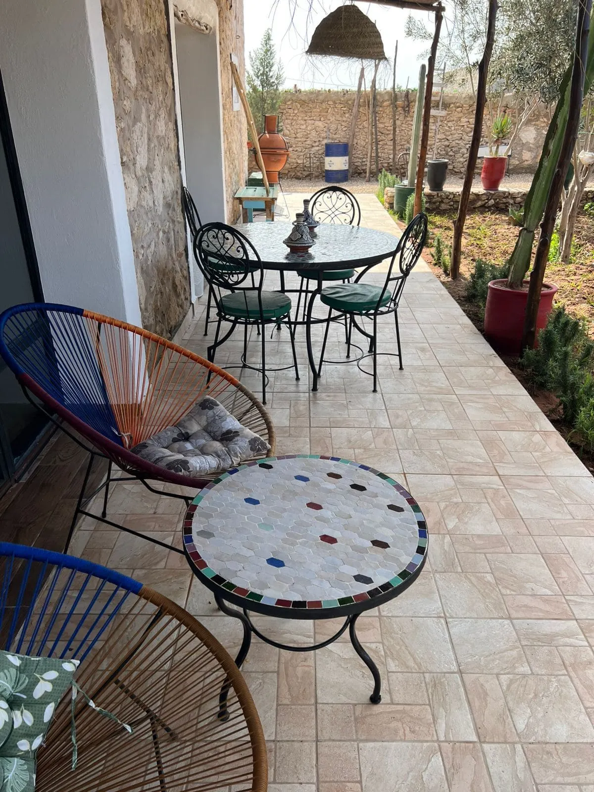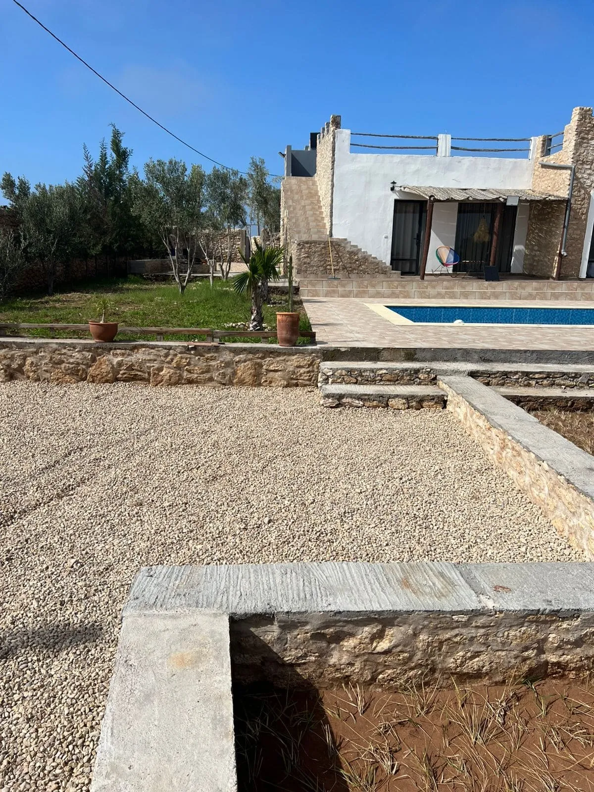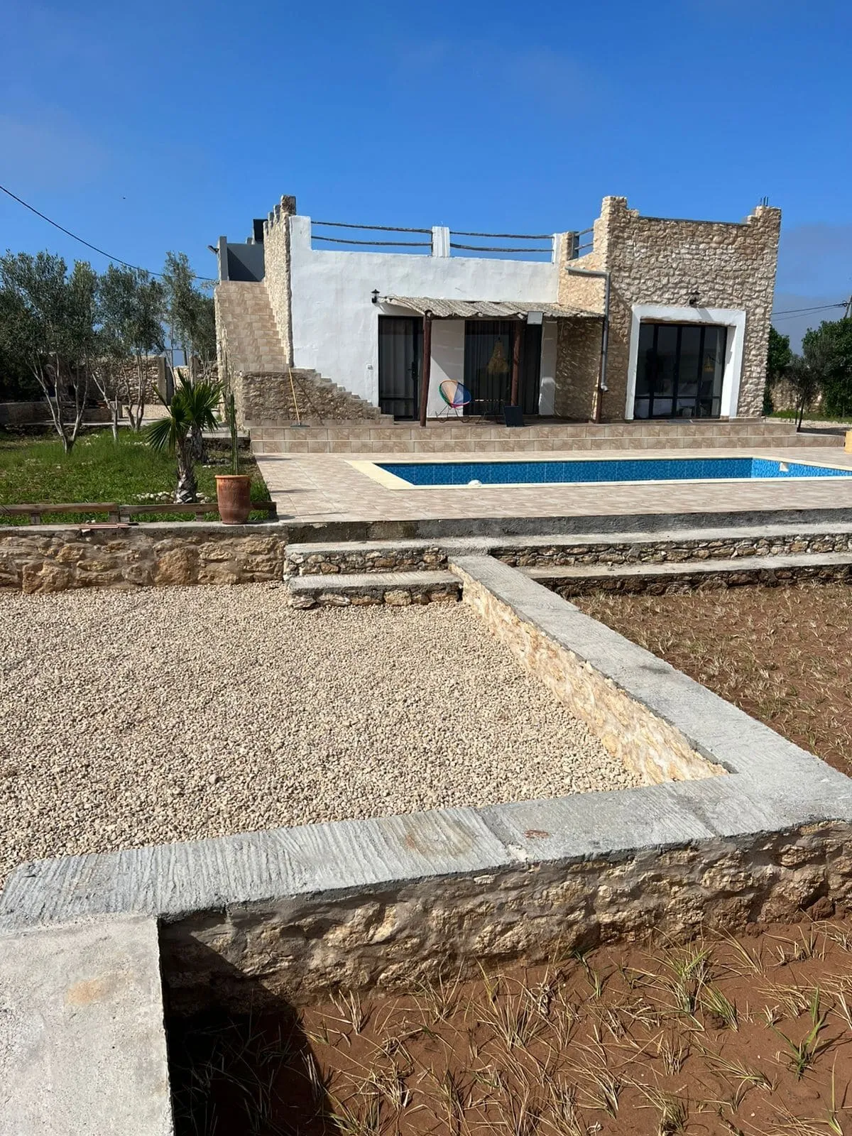 À l’extérieur, la propriété dispose d’une piscine privée et d’un jardin agréable permettant de profiter pleinement du climat d’Essaouira toute l’année. Ce bien convient parfaitement pour une résidence principale en location longue durée proche d’Essaouira