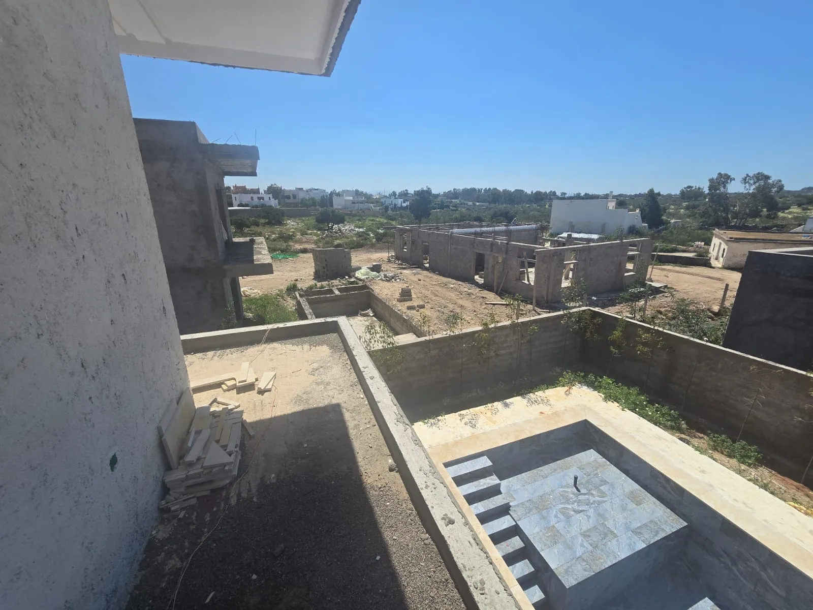 Dans un environnement résidentiel calme de Ghazoua, cette villa en cours de finition bénéficie d’un terrain spacieux de 600 m² à seulement quelques minutes d’Essaouira. Le projet combine espace extérieur généreux et distribution intérieure fonctionnelle, adapté à une vie confortable toute l’année.