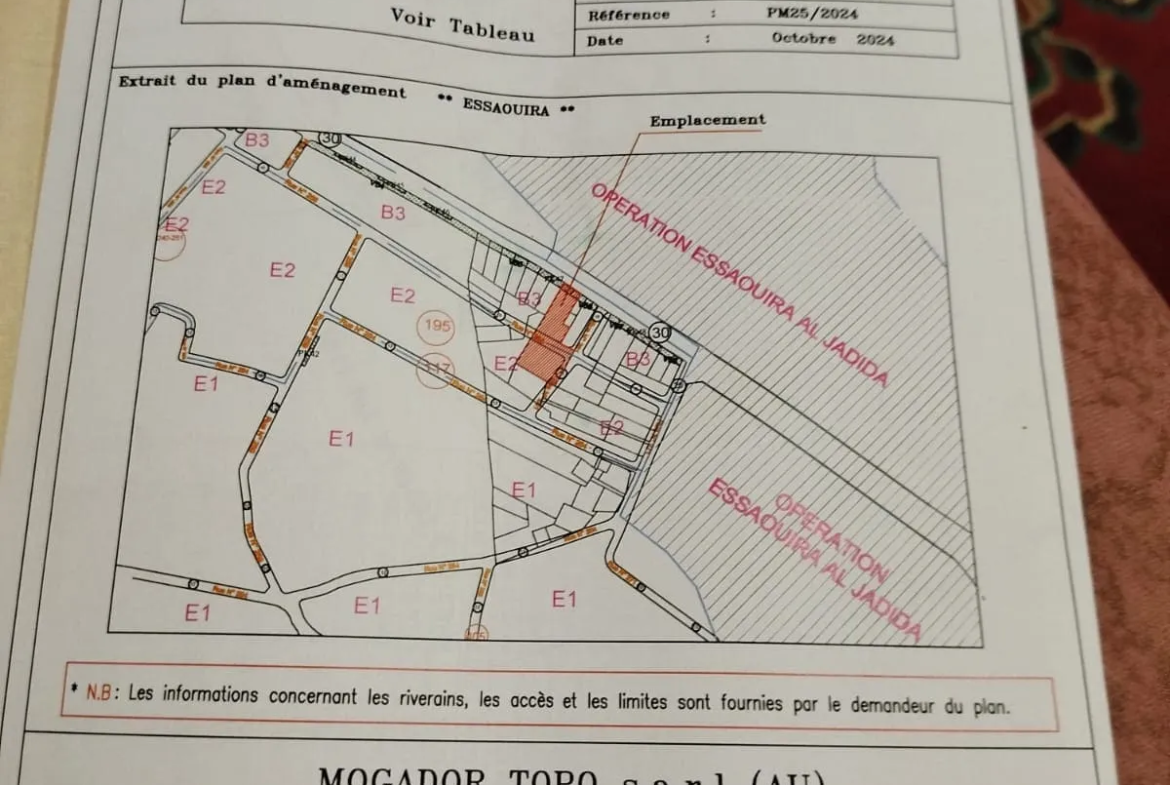 A strategic opportunity in Ghazoua, just a few minutes from Essaouira. This large titled plot benefits from a prime location only about 20 meters from the Aswak Essalam shopping center, offering excellent visibility and easy access from the main road.