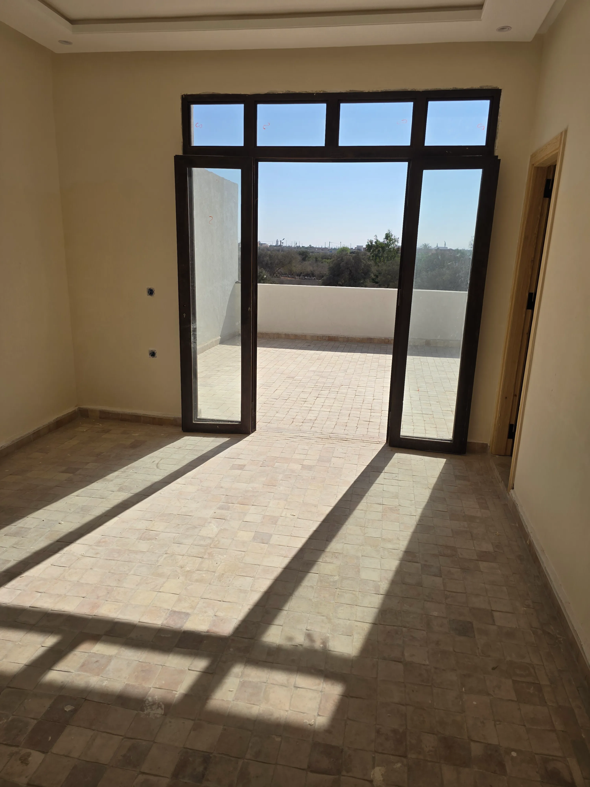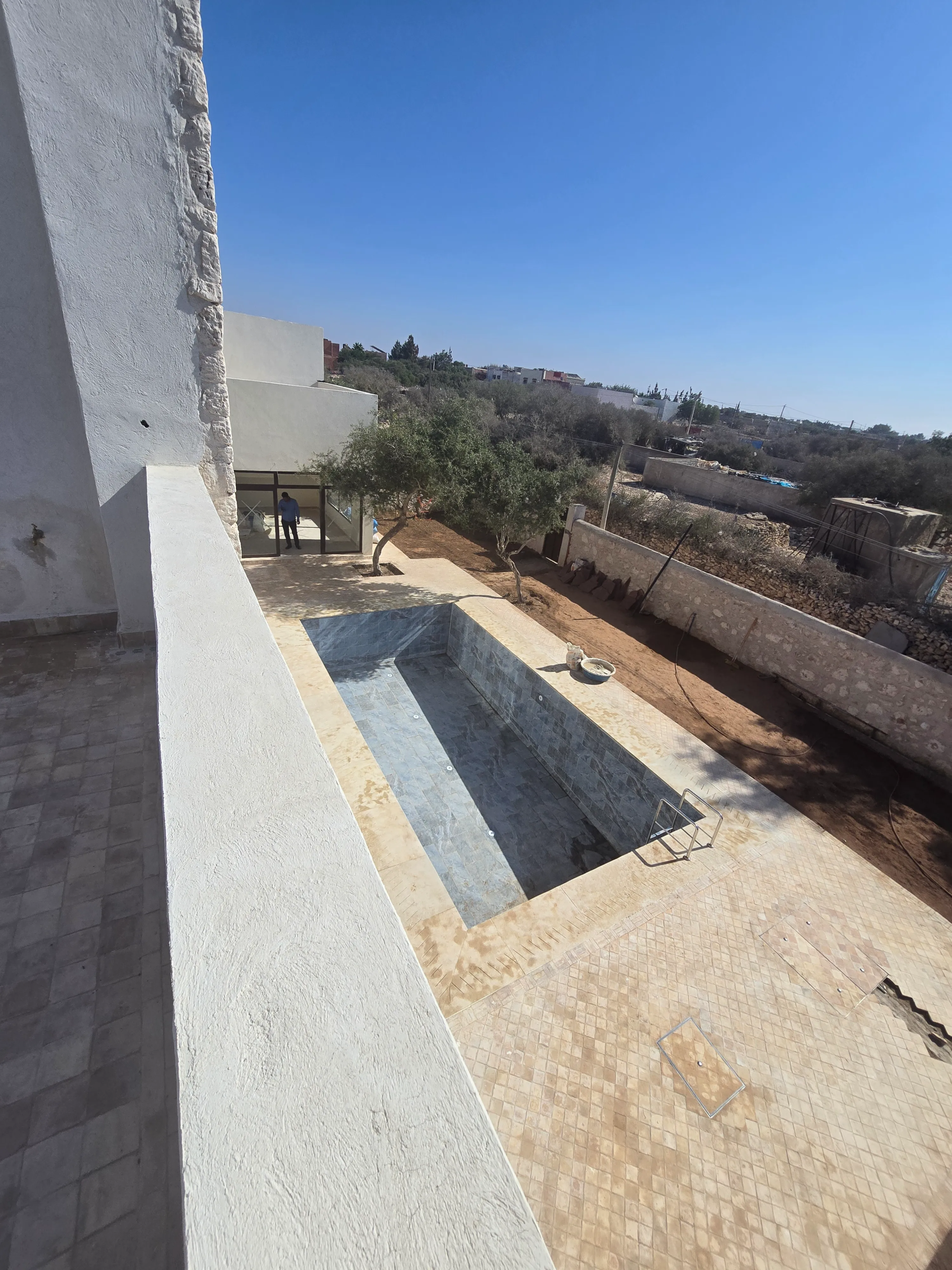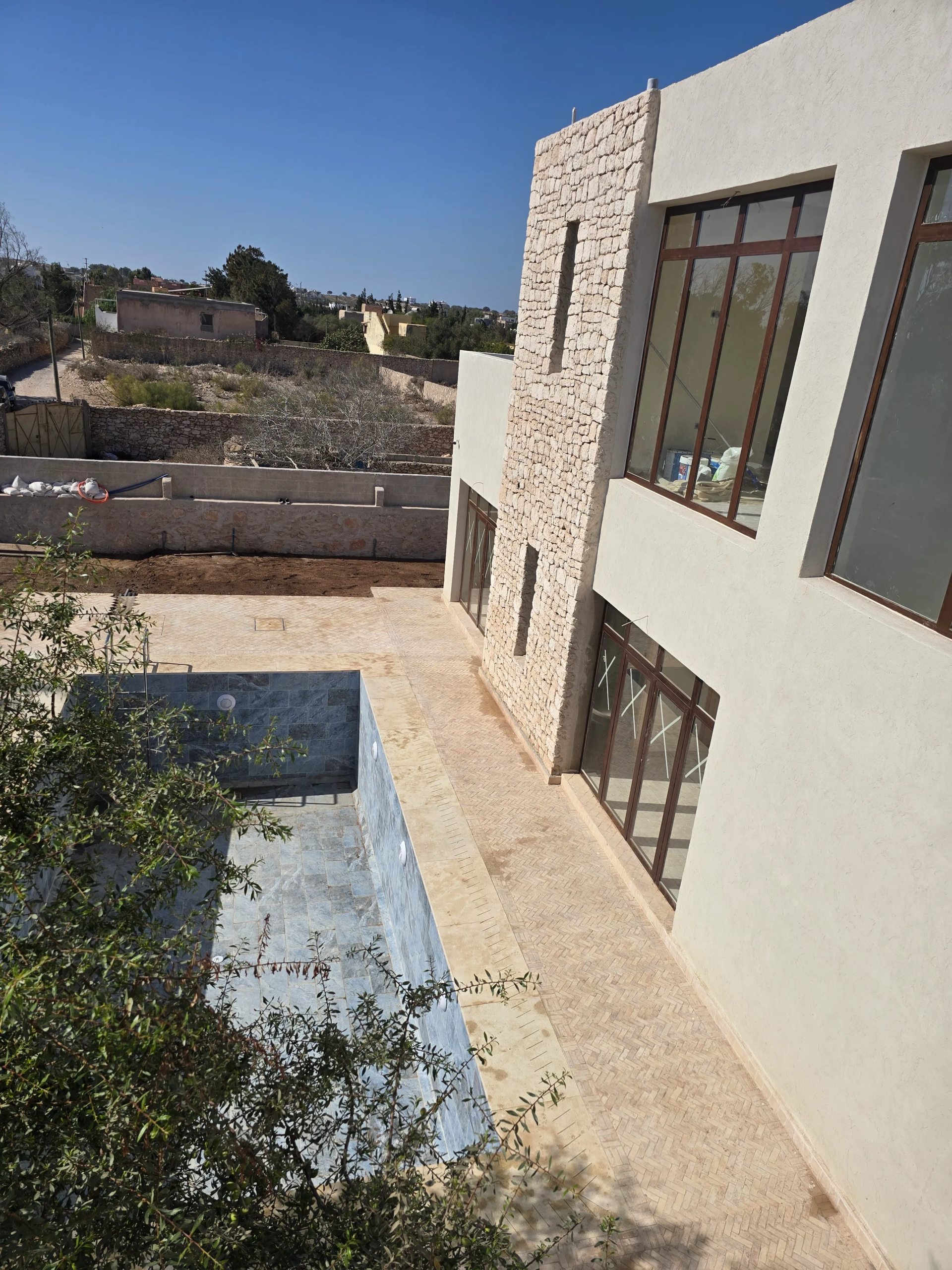 Built on a 590 m² plot, the house offers approximately 150 m² of living space. It features a welcoming living room with refined finishes, an open kitchen, and four spacious bedrooms, each with a natural tadelakt bathroom and built-in wardrobes for optimized storage.