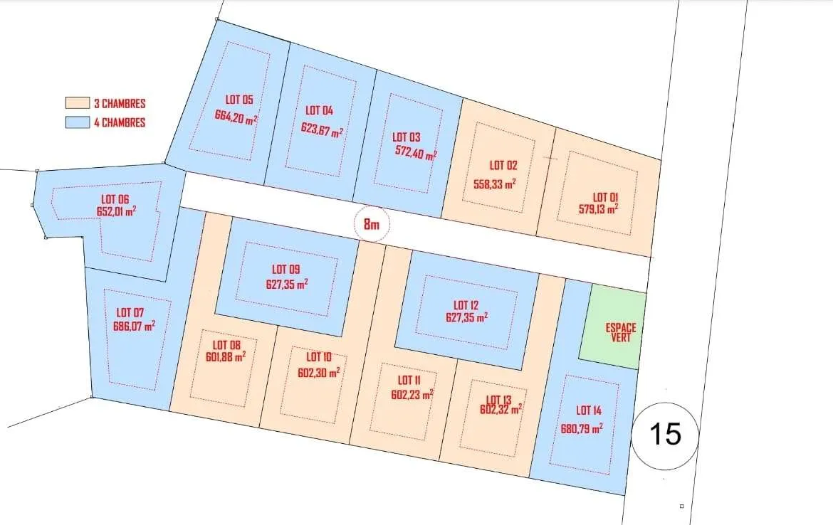Classified in D2 zoning, the land allows the construction of individual villas on separate plots, with an estimated capacity of up to 14 units. Its generous surface area and layout provide great flexibility to design a harmonious and attractive residential compound.