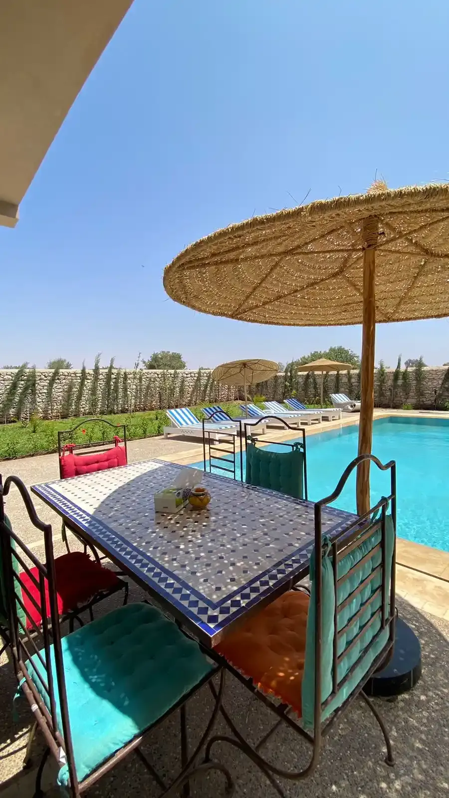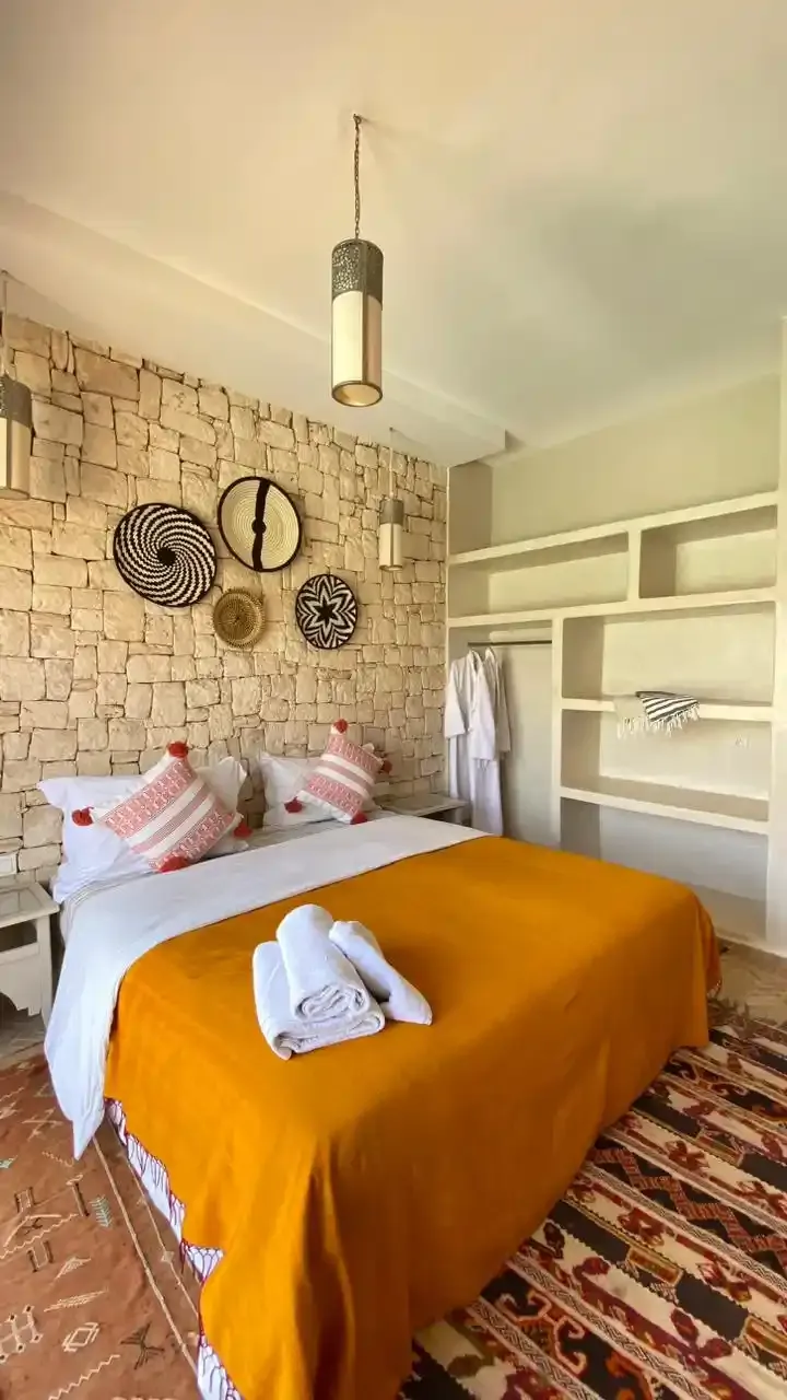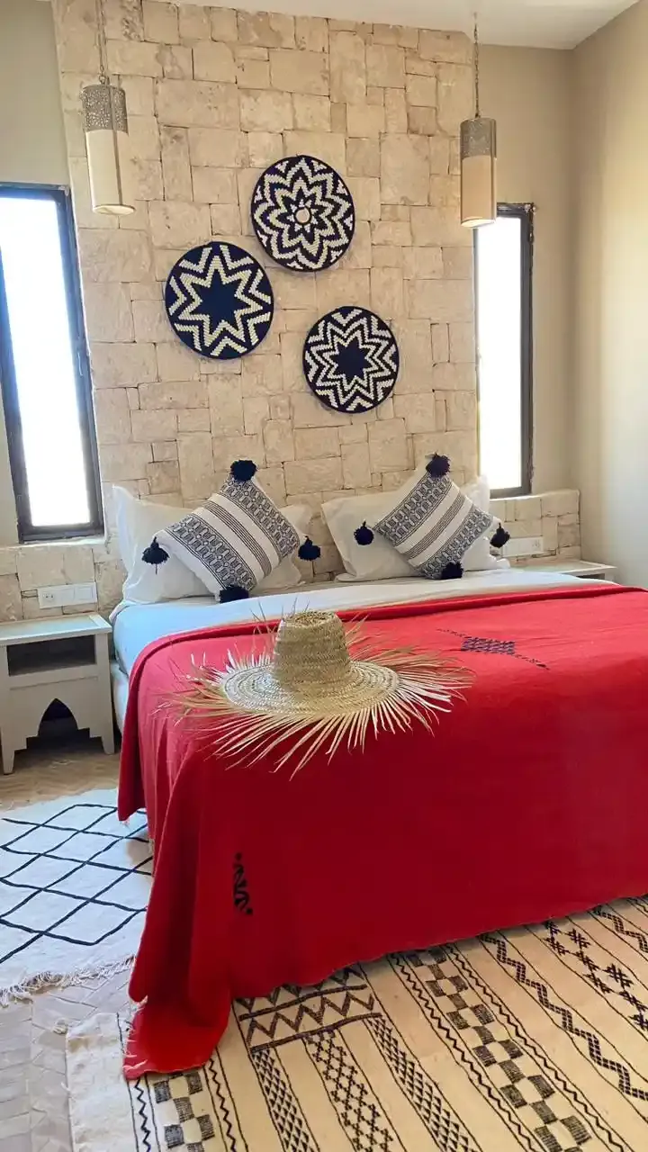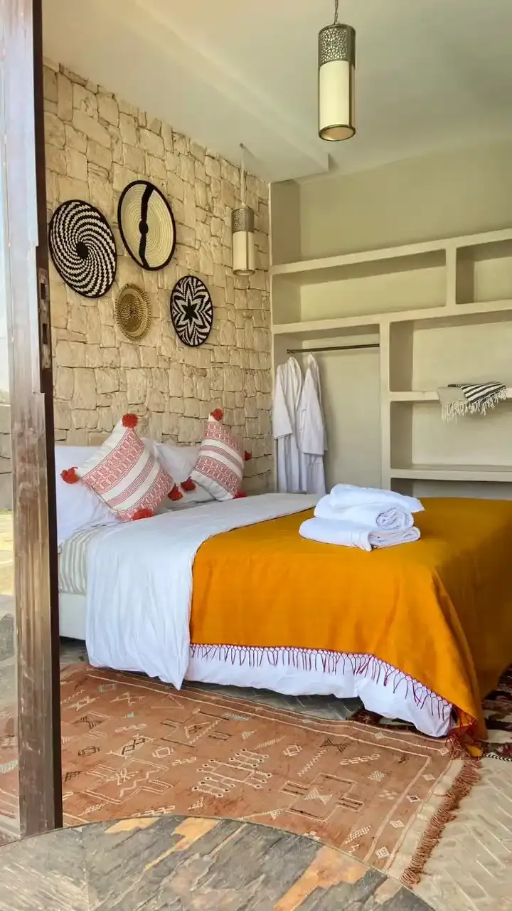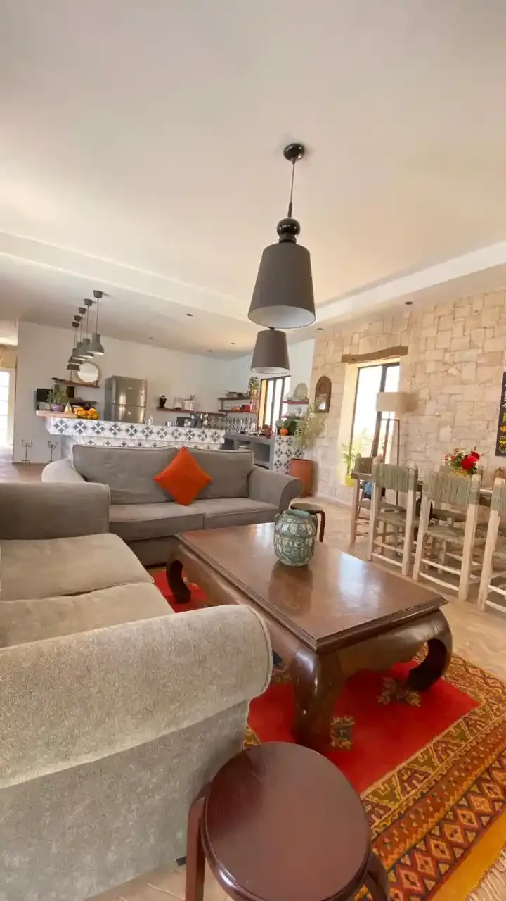 Nichée à Bouzama, un hameau paisible à seulement 10 minutes en voiture d’Essaouira, la villa EL RAHA offre un cadre lumineux et calme, idéal pour profiter de la campagne tout en restant proche de la ville et des plages. Le jardin arboré et la piscine privée créent un espace agréable pour se détendre en extérieur.