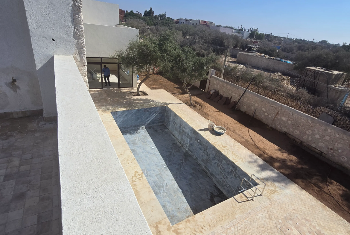Les sols en bejmat traditionnel apportent chaleur et caractère, tandis que la villa reste bien ventilée et exposée plein soleil. Le jardin, facile d’entretien, permet d’aménager des espaces extérieurs agréables pour les repas, la détente ou l’accueil des invités. Cette propriété convient autant à une résidence principale qu’à une maison de vacances ou un investissement locatif à Ghazoua, près d’Essaouira.